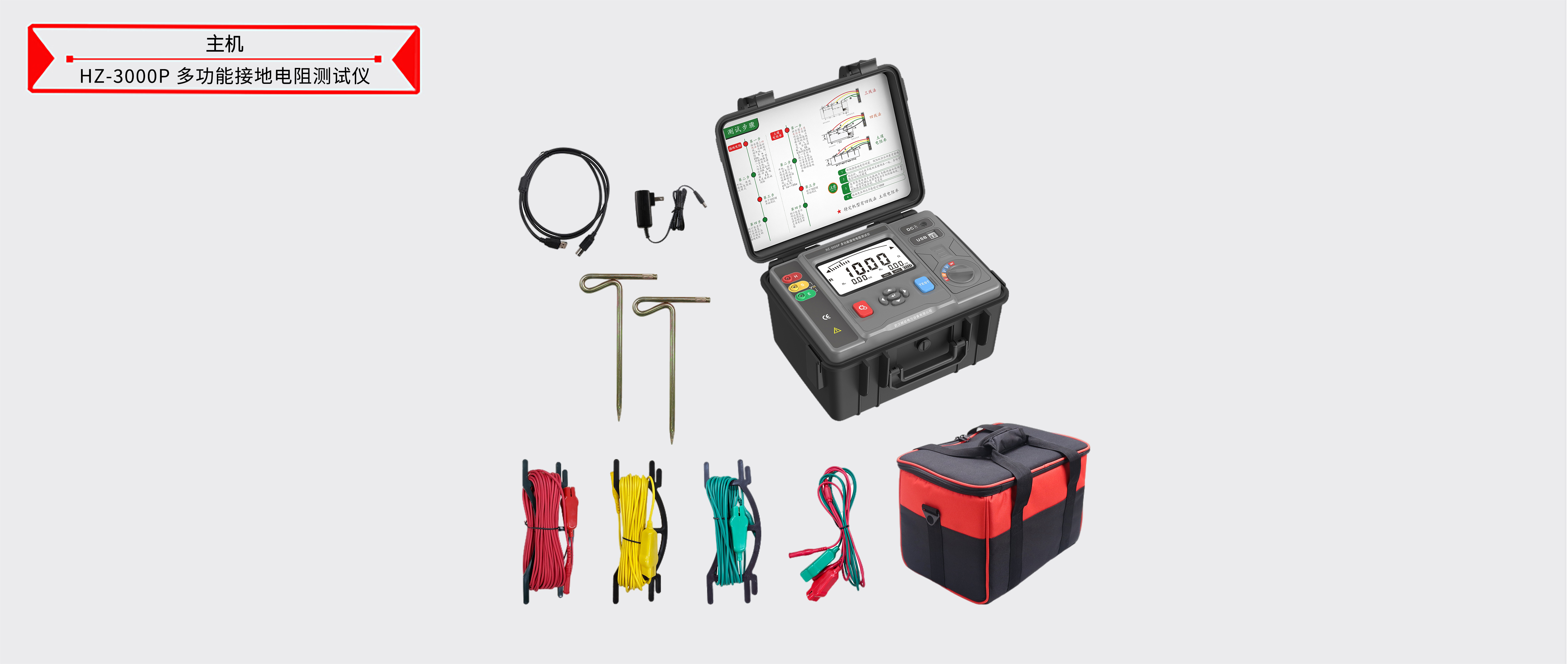 本产品HZ-3000P 多功能接地电阻测试仪表详细清单请以说明书或代销合同为准
