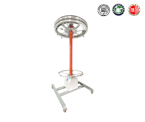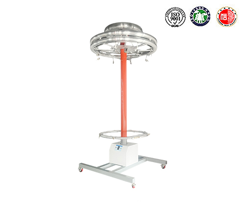 圆形整体绝缘杆耐压测试平台移动高压电极环高压接入端与高压升压设备输出端连接好高压线。接通绝缘杆测试平台工作电源,根据被试品电压等级,调节接地电极与高压电极之间的距离(即试验长度),试验长度可在0.6~2.2米之间调节。测试支架具有标尺刻度,采用按键或无线遥控两种方式控制,采用调速电机可调节升降速度,便于精确调整距离。一次可以进行8根绝缘杆的整根耐压试验。