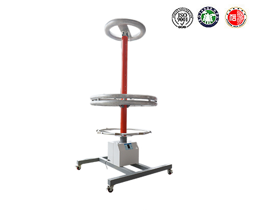 圆形整体绝缘杆耐压测试平台移动高压电极环高压接入端与高压升压设备输出端连接好高压线。接通绝缘杆测试平台工作电源,根据被试品电压等级,调节接地电极与高压电极之间的距离(即试验长度),试验长度可在0.6~2.2米之间调节。测试支架具有标尺刻度,采用按键或无线遥控两种方式控制,采用调速电机可调节升降速度,便于精确调整距离。一次可以进行8根绝缘杆的整根耐压试验。